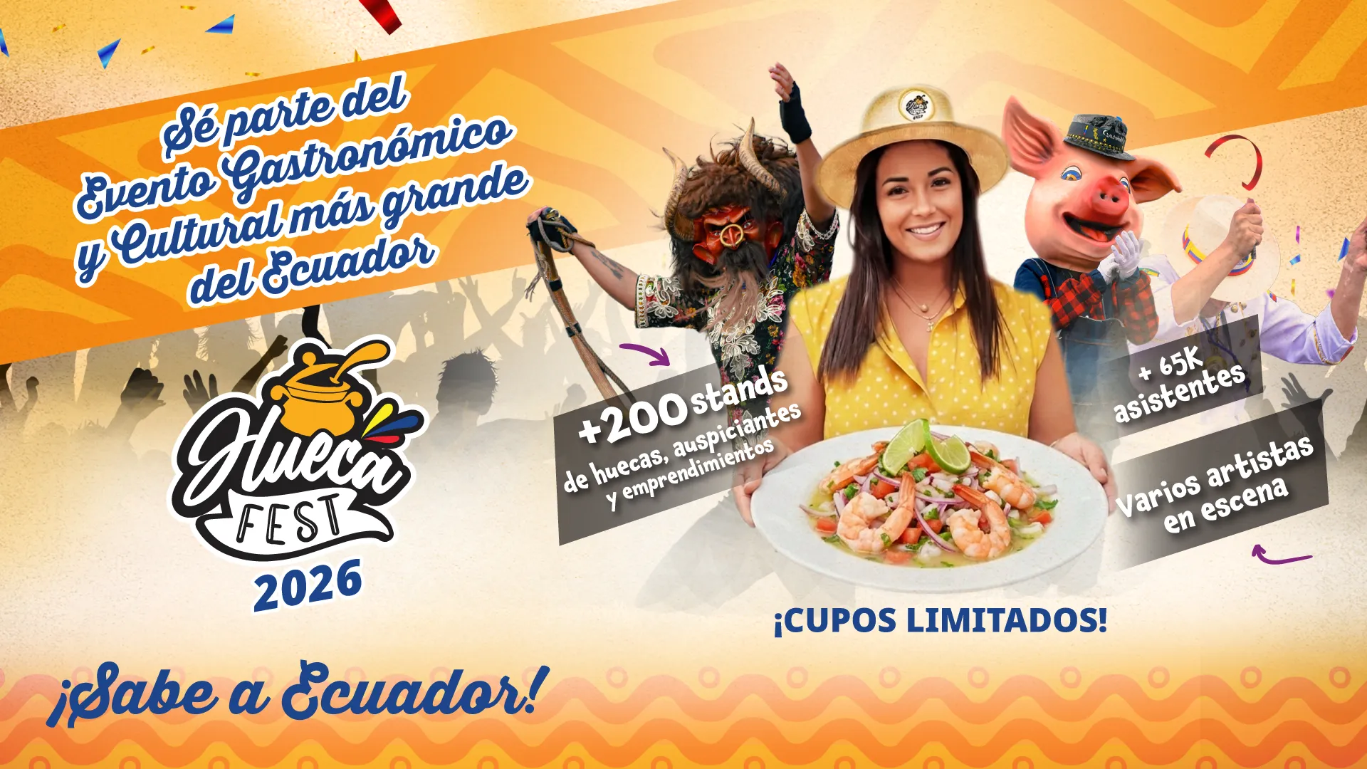 Cada año celebramos tradición, innovación y un profundo amor por lo nuestro. ¡Vive el ADN gastronómico del Ecuador y descubre sus sabores en Hueca Fest!