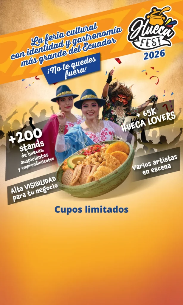 El Hueca Fest es un festival cultural y gastronómico que reúne los sabores y saberes tradicionales de las cuatro regiones del Ecuador (Costa, Sierra, Amazonía y Galápagos). Su objetivo principal es preservar la identidad nacional a través de recetas familiares heredadas por generaciones, fortaleciendo el sentido de pertenencia y asegurando que estas tradiciones perduren.
